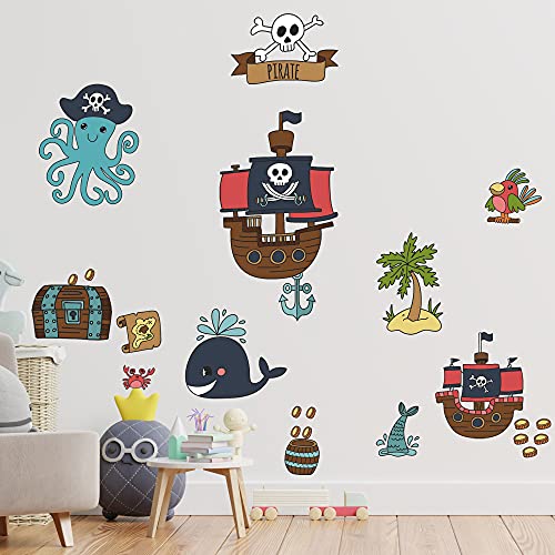 Piraten Wandtattoo Set V250 | handgezeichnet | AUFKLEBER Kindergarten | Wandsticker Kinderzimmer Matrose Pirat Oktopus Piratenschiff [...]