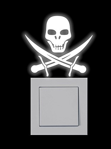 Leuchtendes Wandtattoo für Lichtschalter, sh003- selbstklebend Pirat - Totenkopf mit Säbeln - leuchtet im Dunkeln - Leuchtaufkleber, [...]