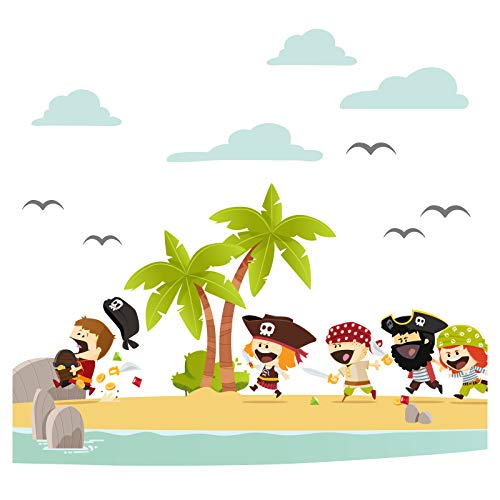 WandSticker4U®- Wandtattoo PIRATEN Kinderzimmer (70x52 cm) I Meereswelt Wandsticker Schatztruhe Deko I Wanddeko für Badezimmer & [...]
