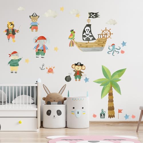 GRAZDesign Wandtattoo Piraten Kinderzimmer Set - Pirat Tiere Piratenschiff - Wandaufkleber Babyzimmer für Jungen und Mädchen, [...]