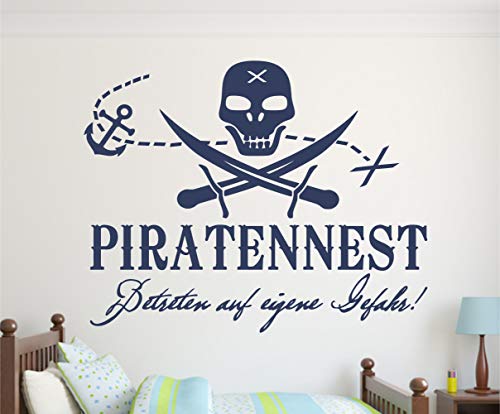 Wandtattoo Loft Piraten-Nest mit Totenkopf Kinderzimmer Pirat Wandbild / 30 Farben / 3 Größen