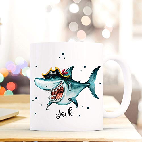 ilka parey wandtattoo-welt Tasse Becher mit Hai Haifisch Pirat Geschenk mit Tiermotiv Kaffeetasse Haitasse mit Namen Wunschnamen [...]