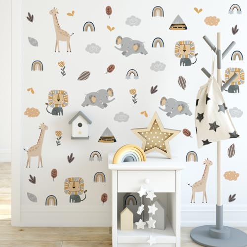 GHELKUC Wandaufkleber Kinderzimmer,Safari Wandsticker,Tiere Löwe Elefant Giraffe Selbstklebend Wandtattoo Wanddeko für Schlafzimmer [...]