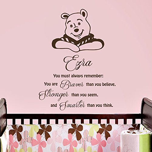 Vinyl Wandtattoo Zitat You Must Always Remember You Are Braver Winnie Puuh the Pooh mit Namen für Mädchen Junge Kinder Baby Bär [...]