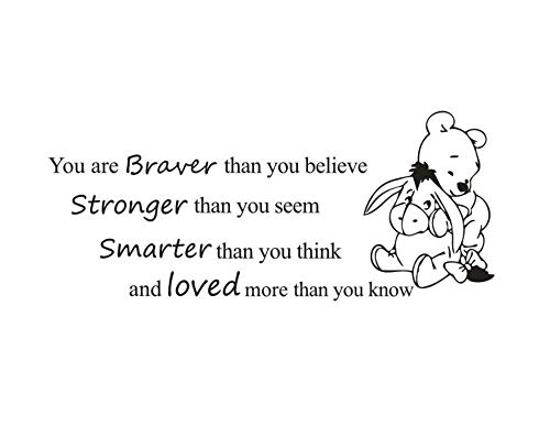 Winnie the Pooh Wandtattoo / Wandaufkleber, Schriftzug You are braver than you believe, stronger than you seem , Hellgrau