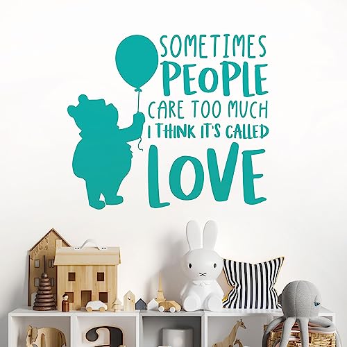 Wandtattoo Sometimes People Care Too Much , Schriftzug Love Winnie the Pooh , Türkis