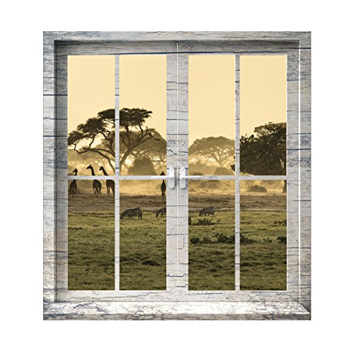 Premiumdesign Wandtattoo Holz-Fenster Ausblick in die Savanne Afrika in Originalgröße 120 x 130cm farbig #146