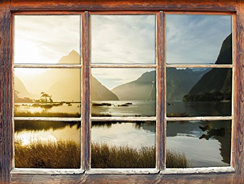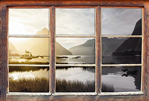 Stil.Zeit Milford Sound Neuseeland Fenster im 3D-Look, Wand- oder Türaufkleber Format: 92x62cm, Wandsticker, Wandtattoo, Wanddekoration