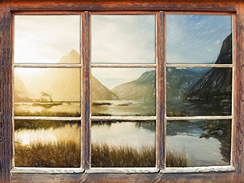 Stil.Zeit Milford Sound Neuseeland Kunst Buntstift Effekt Fenster im 3D-Look, Wand- oder Türaufkleber Format: 92x62cm, Wandsticker, [...]