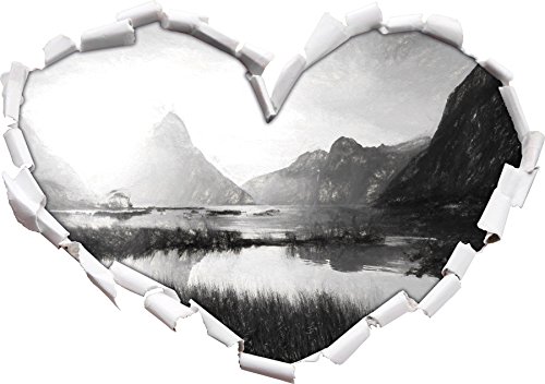 Stil.Zeit Milford Sound Neuseeland Kunst Kohle Effekt Herzform im 3D-Look, Wand- oder Türaufkleber Format: 92x64.5cm, Wandsticker, [...]
