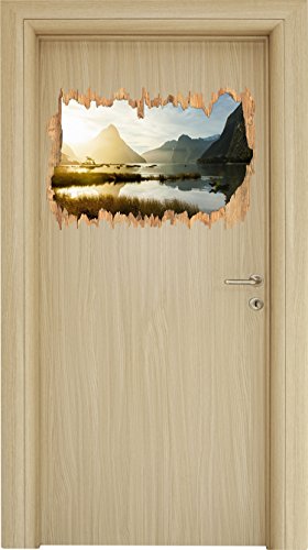 Stil.Zeit Milford Sound Neuseeland Kunst Buntstift Effekt Wanddurchbruch im 3D-Look, Wand- oder Türaufkleber Format: 92x62cm, Wandsticker, [...]