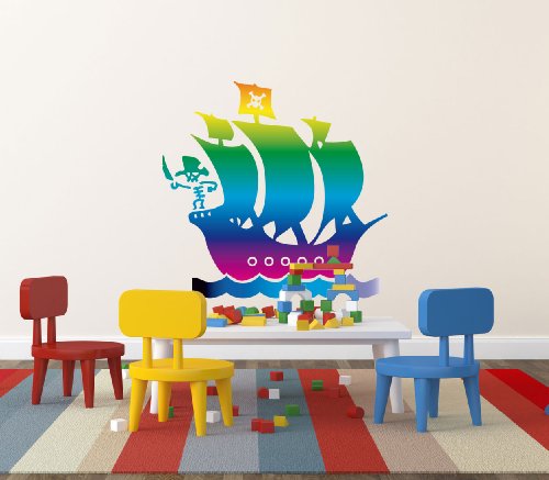 Wandtattoo Piratenschiff Regenbogen farbig 125 x 120cm #122C XXL