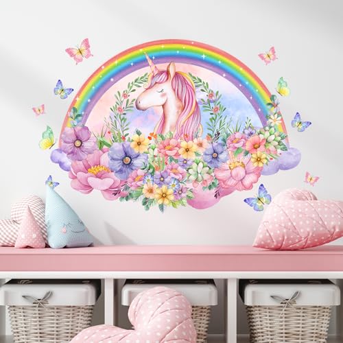 Tanlaby Einhorn Regenbogen Wandsticker Blumen Einhorn Schmetterlinge Wandtattoo Selbstklebend Abnehmbar Wandaufkleber für Mädchen [...]