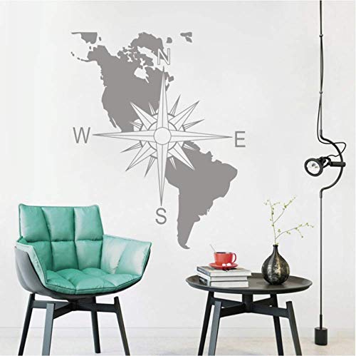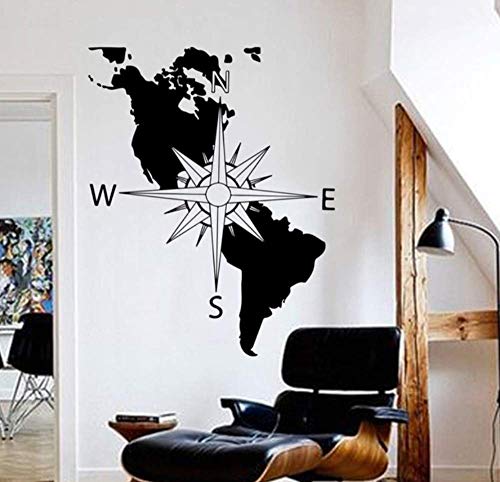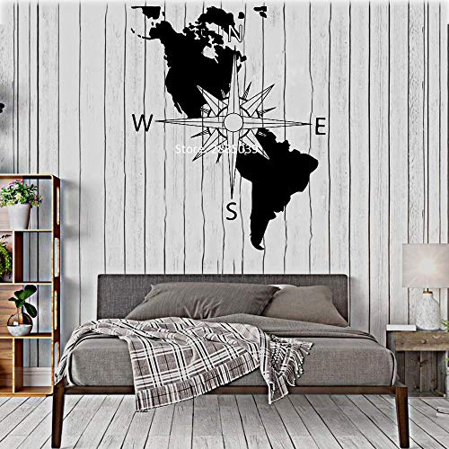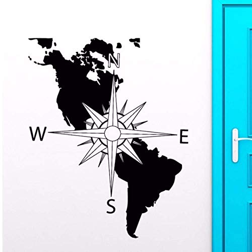 Wandsticker Kompass Vinyl Wandtattoo Amerika Kontinent Karte Wandkunst Wand Navigation Kompass Dekoration Wand Poster 57X71cm