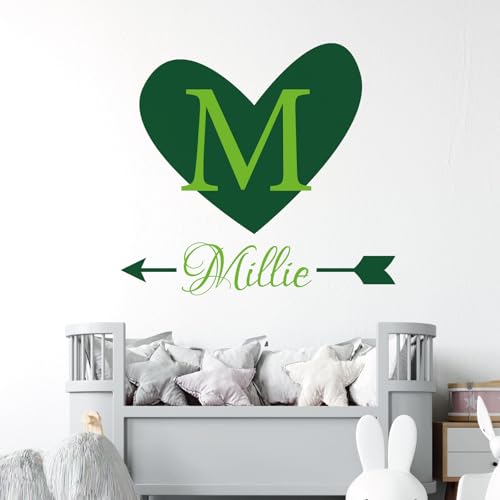 Wandtattoo mit Herz und Pfeil – personalisierbarer Name, Initial-Buchstabe, für Kinderzimmer, Schlafzimmer [Wald]