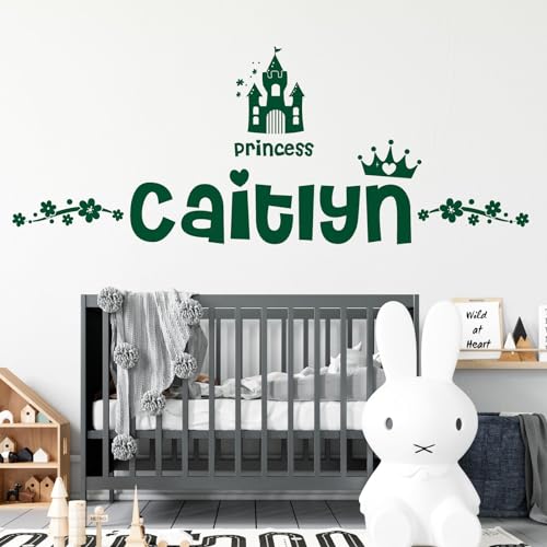 Wandtattoo für Mädchen, personalisierbar, Prinzessinnen-Disney-Schlosskrone, Blumenmotiv [groß] [Wald]