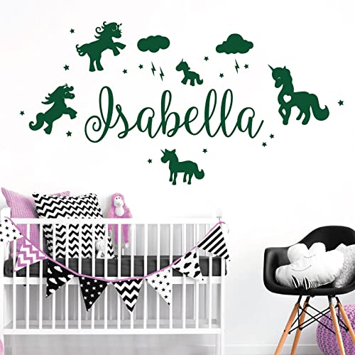 Wandtattoo, Motiv Einhörner, Sterne und Wolken, personalisierbar Name Size: Medium (580 x 150mm) wald