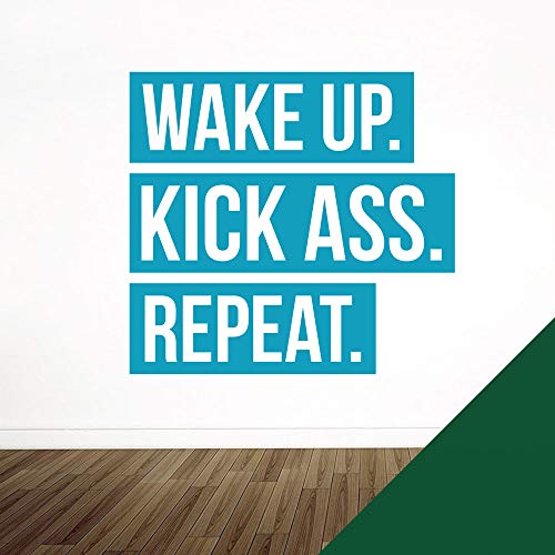 Wake UP. Kick Po. Repeat. Wandtattoo mit Motivationszitat, Wald, Medium (450 x 420mm)