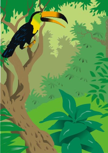 PEMA INDIGOS UG - Wandtattoo Wandsticker Wandaufkleber Aufkleber bunt farbig MF512 Schwäne Papagei im Wald 20 x 14 cm