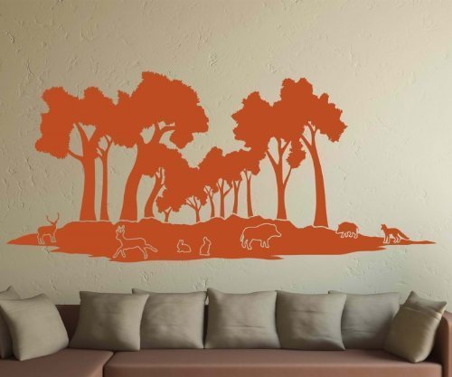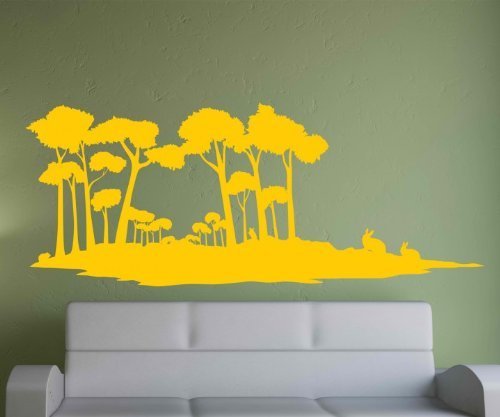 Pema Wandtattoo bunt ME088 schöner Wald Blumen Gras Blüten Natur Pflanzen Wildnis Baum 20 x 17 cm