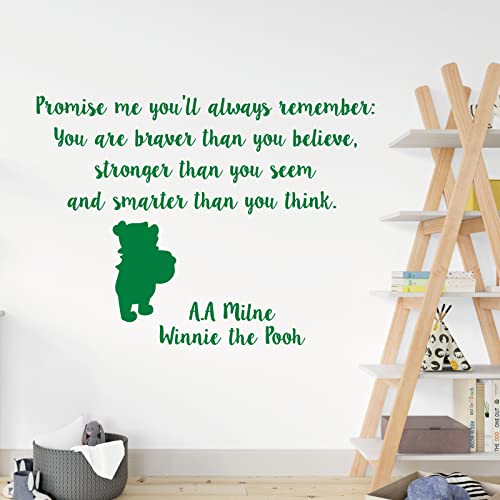 Wandaufkleber mit Zitat You are braver than you believe, stronger than you seem . Winnie the Pooh Buch, Wiese, englischer Text