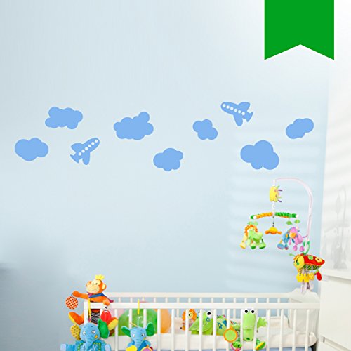 WANDKINGS Wandtattoo 5 Wolken und 2 Flugzeuge im Set 110 x 77 cm dunkelgrün - erhältlich in 33 Farben