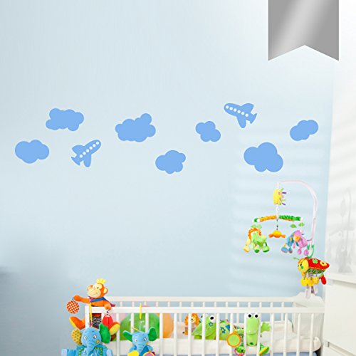 WANDKINGS Wandtattoo 5 Wolken und 2 Flugzeuge im Set 90 x 63 cm Silber - erhältlich in 33 Farben
