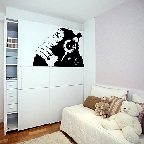 (160x 111cm) Banksy Vinyl Wand Aufkleber Affe mit Kopfhörer/One Farbe Chimp Musik hören in Kopfhörer/Street Graffiti Aufkleber + Gratis [...]