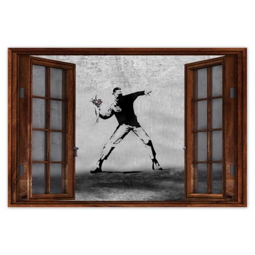 Wandsticker Dekor Foto Aufkleber 120x80cm Blumenwerfer Banksy No.H8123M_WBNS1B