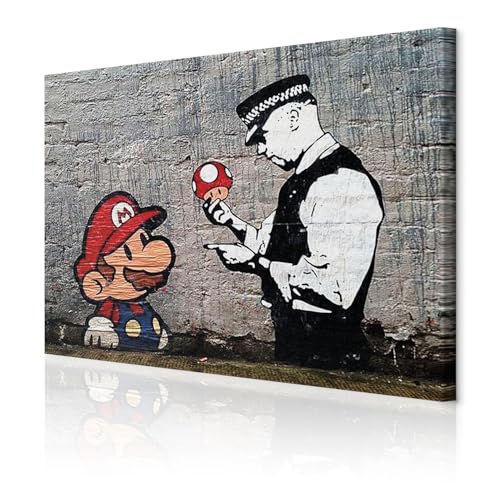 decomonkey Akustikbild Mario and Cop Banksy 120x80 cm 1 Teilig Leinwand Modern Bilder Wandbilder XXL Schallschlucker Schallschutz [...]