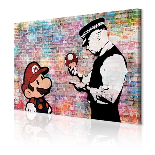 decomonkey Akustikbild Mario and Cop Banksy 120x80 cm 1 Teilig Leinwand Modern Bilder Wandbilder XXL Schallschlucker Schallschutz [...]