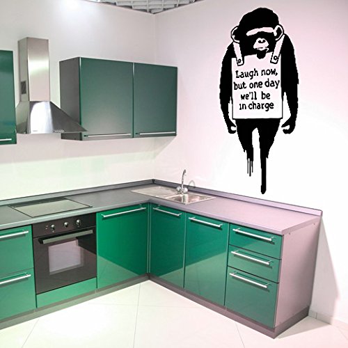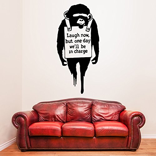 (39 x 80 cm Wandtattoo, Vinyl, Motiv Affe, Banksy, Laugh Now , mit Motiv Schimpanse mit Graffiti Street Text, Vinyl, wieder ablösbar, [...]