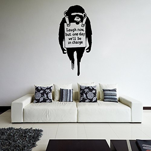 (34x70 cm) Banksy Vinyl Wand Aufkleber AFFE mit Spruch Laugh Now/AFFE mit Text Street Graffiti Dekor Entfernbarer Sticker + Gratis [...]