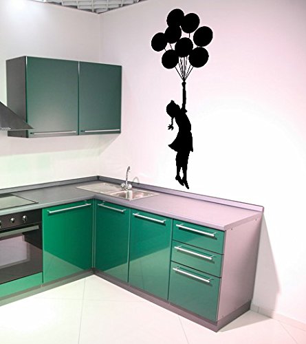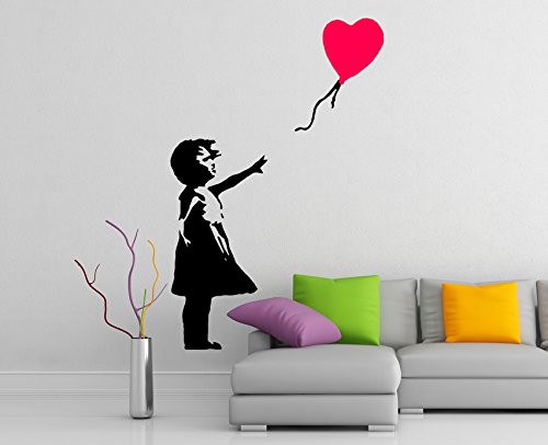 (80 x 54 cm, Vinyl, Banksy-Motiv Mädchen mit Luftballon Herz Herzballon, Graffiti/Street Art Decor Wandtattoo/Wandsticker, entfernbar, [...]