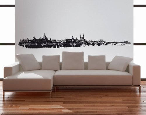 Samunshi® Wandtattoo Dresden Schriftzug Skyline schwarz