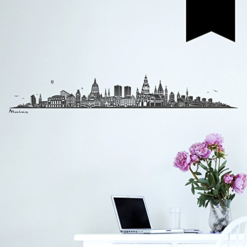 WANDKINGS Wandtattoo Skyline Mainz (mit Sehenswürdigkeiten und Wahrzeichen der Stadt) 140 x 24 cm schwarz - erhältlich in 33 Farben