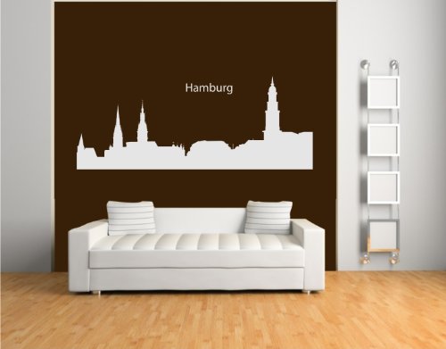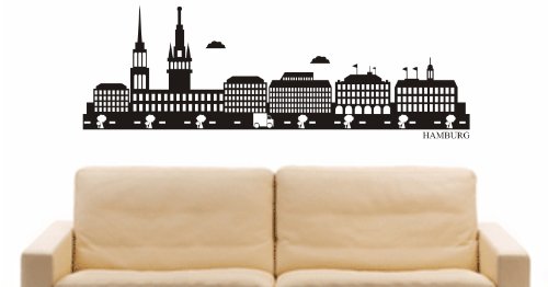 INDIGOS UG - Wandtattoo Wandsticker Wandaufkleber Aufkleber - Wandaufkleber e786 Skyline Stadt - Hamburg (Deutschland) Design 2-40x14 cm - [...]