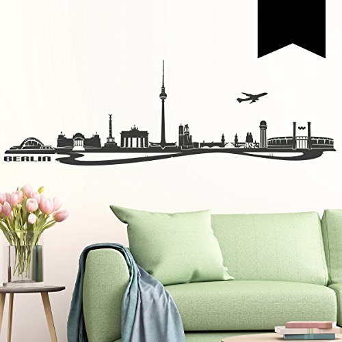 Wandkings Wandtattoo Skyline Berlin (mit Sehenswürdigkeiten und Wahrzeichen der Stadt) 110 x 34 cm schwarz - erhältlich in 33 Farben