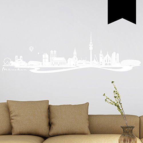 Wandkings Wandtattoo Skyline München (mit Sehenswürdigkeiten und Wahrzeichen der Stadt) 115 x 35 cm schwarz - erhältlich in 33 Farben