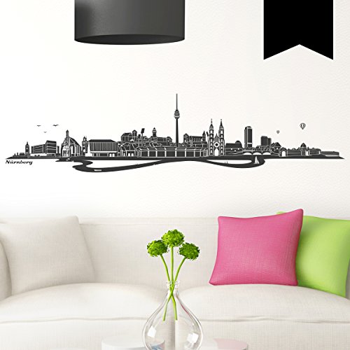 WANDKINGS Wandtattoo Skyline Nürnberg 160 x 37 cm schwarz - erhältlich in 33 Farben