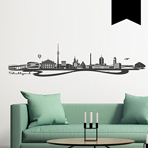 WANDKINGS Wandtattoo Skyline Stuttgart (mit Sehenswürdigkeiten und Wahrzeichen der Stadt) 160 x 38 cm schwarz - erhältlich in 33 Farben