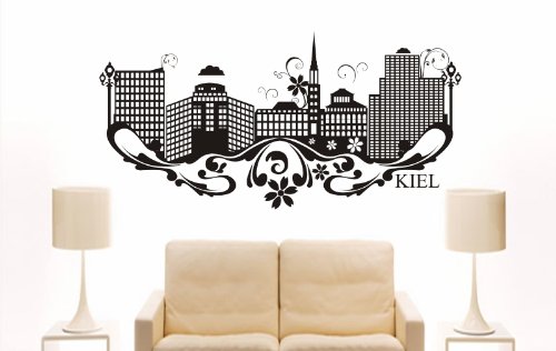 Samunshi® Wandsticker Kiel Skyline schwarz 30x6,1cm