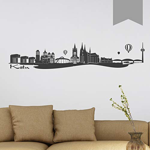 WANDKINGS Wandtattoo Skyline Köln (mit Sehenswürdigkeiten und Wahrzeichen der Stadt) 80 x 16 cm Mittelgrau - erhältlich in 33 Farben