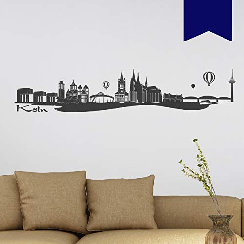 Wandkings Wandtattoo Skyline Köln (mit Sehenswürdigkeiten und Wahrzeichen der Stadt) 80 x 16 cm schwarz - erhältlich in 33 Farben