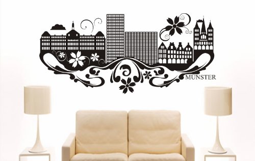 INDIGOS UG - Wandtattoo Wohnzimmer - Wandaufkleber Kinderzimmer farbige Wandschrift Städtename Städtename Munster mit Sehenswürdigkeiten [...]