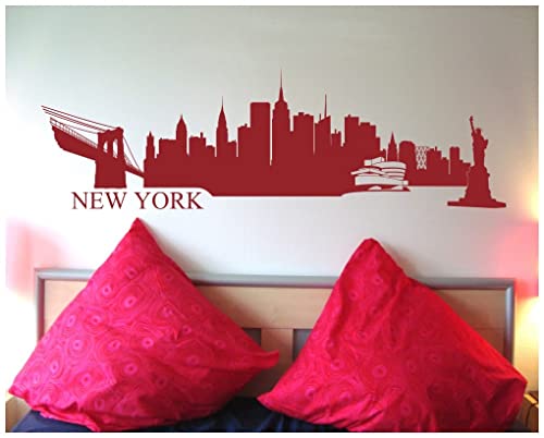 INDIGOS UG WANDTATTOO/Wandsticker w402 Skyline New York Wandaufkleber einfarbig Farbwahl 48 Farben, 120x104 cm