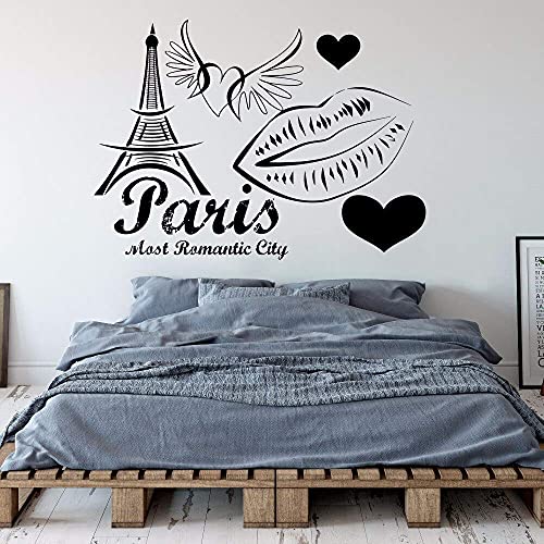 Vinyl Wandaufkleber Paris Frankreich Wand Poster Berühmte Turm Wandtattoo Dekoration Herz Flügel Liebe Romantisches Wandbild 57 * 41Cm
