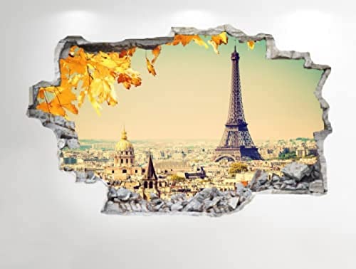 Wandsticker Paris Wandaufkleber 3D-Look – Schlafzimmer Lounge Eiffelturm Stadt Wandtattoo Z12 50x75cm