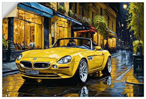 ARTland Wanddeko Wandtattoo selbstklebende Vinylfolie 90x60 cm Auto Sportwagen Cabrio BMW Z8 Gelb Paris U5CT