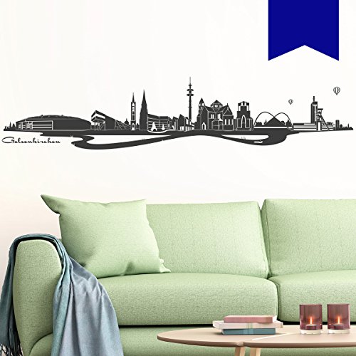 WANDKINGS Wandtattoo Skyline Gelsenkirchen (mit Sehenswürdigkeiten und Wahrzeichen der Stadt) 80 x 16 cm verkehrsblau - erhältlich in 33 [...]